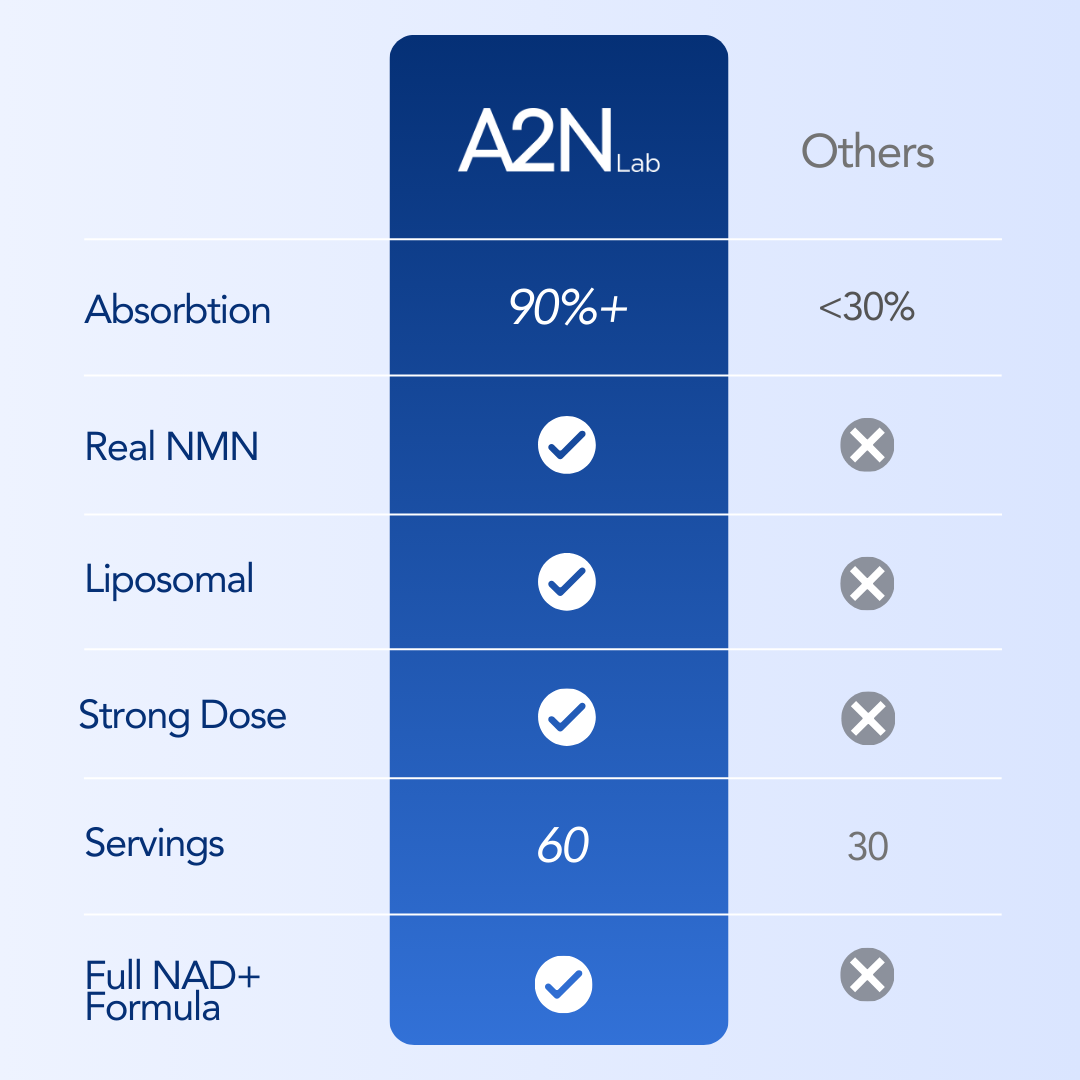 A2N NMN powerfully increases NAD+ levels, activating longevity pathways and supporting your body’s ability to repair cells and resist age-related decline.
