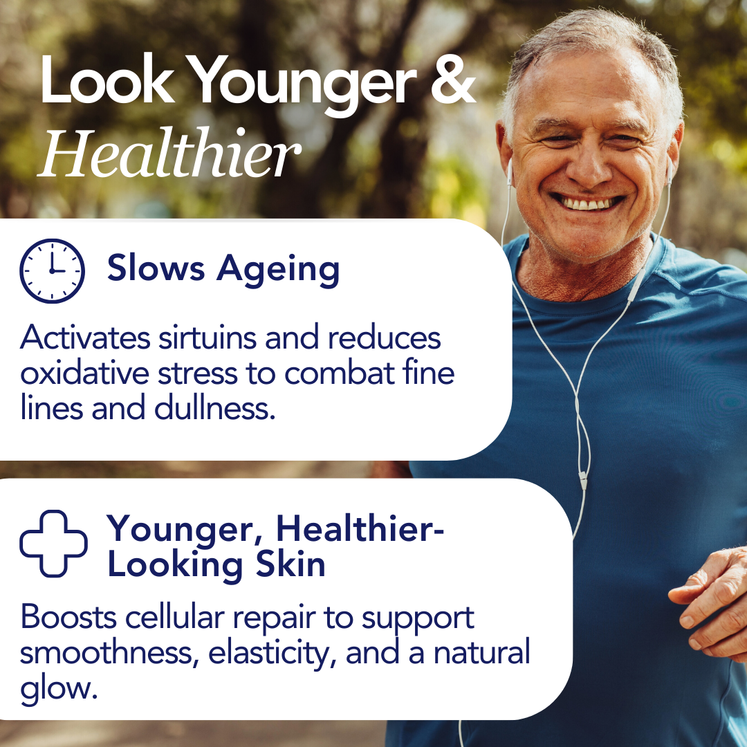 Promotes DNA repair and collagen regeneration, helping to reduce fine lines, firm skin, and restore a more youthful glow from the inside out.